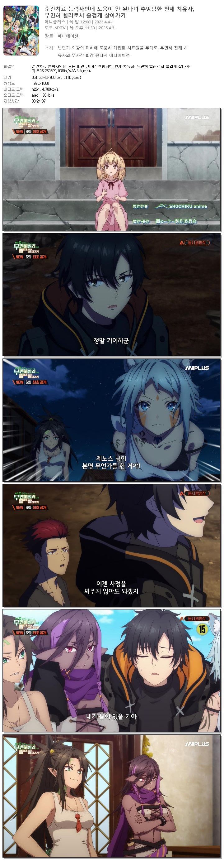 순간치료 능력자인데 도움이 안 된다며 추방당한 천재 치유사, 무면허 힐러로서 즐겁게 살아가기.E06.250509.1080p.WANNA
