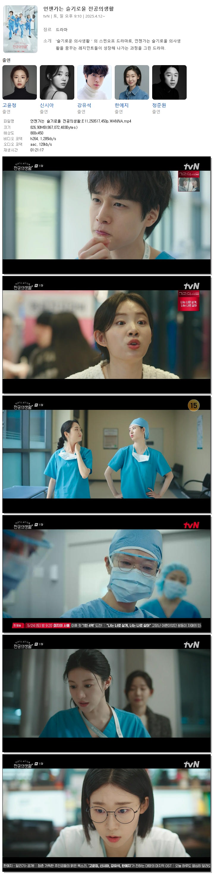[TVN] 언젠가는 슬기로울 전공의생활.E11.250517.450p.WANNA[고윤정, 신시아]