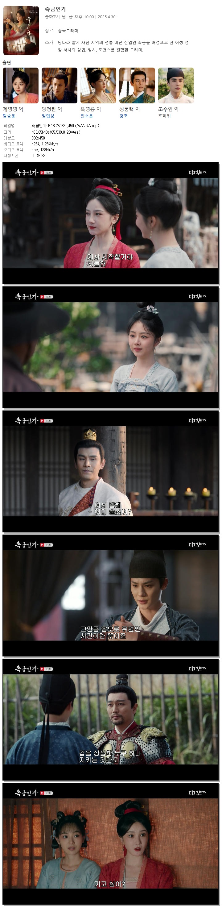 [중화TV] 촉금인가.E16.250521.450p.WANNA[담송운, 정업성]