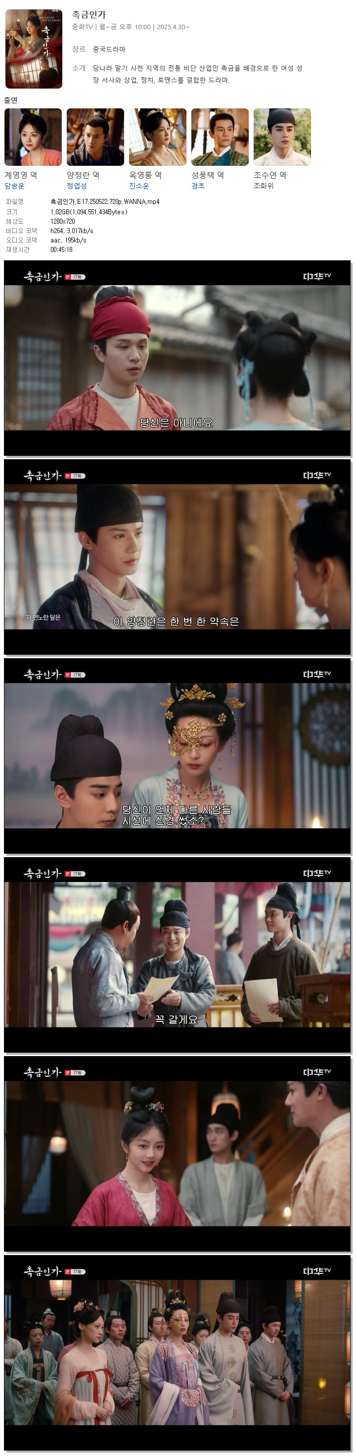 [중화TV] 촉금인가.E17.250522.720p.WANNA[담송운, 정업성]