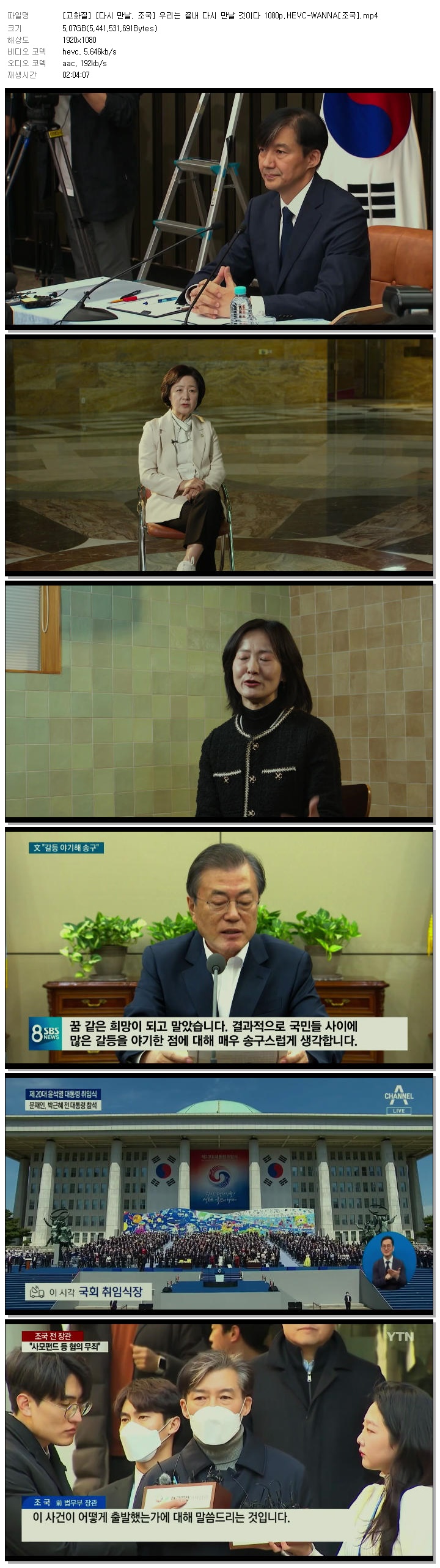 [고화질] [다시 만날, 조국] 우리는 끝내 다시 만날 것이다 1080p.HEVC-WANNA[조국].mp4 5.1 G MP4 02:04:07 1920x1080