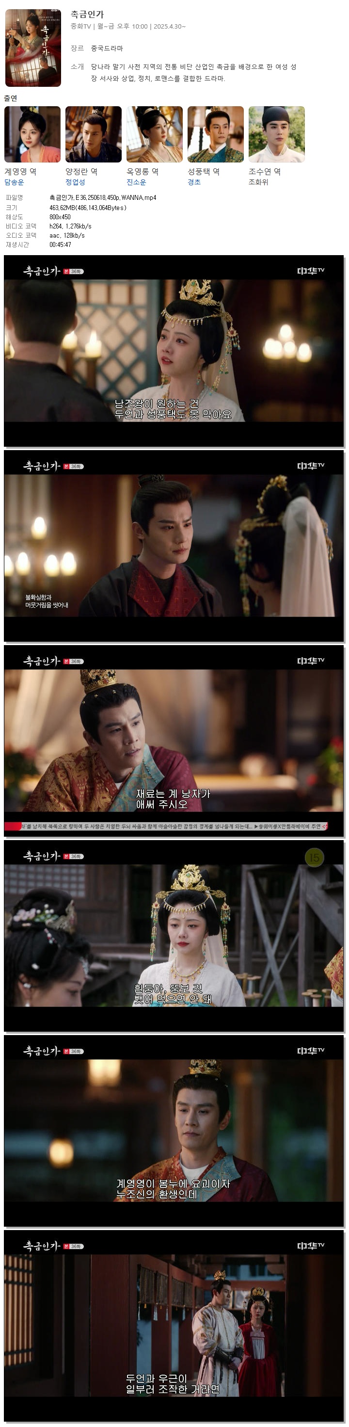 [중화TV] 촉금인가.E36.250618.450p.WANNA[담송운, 정업성]