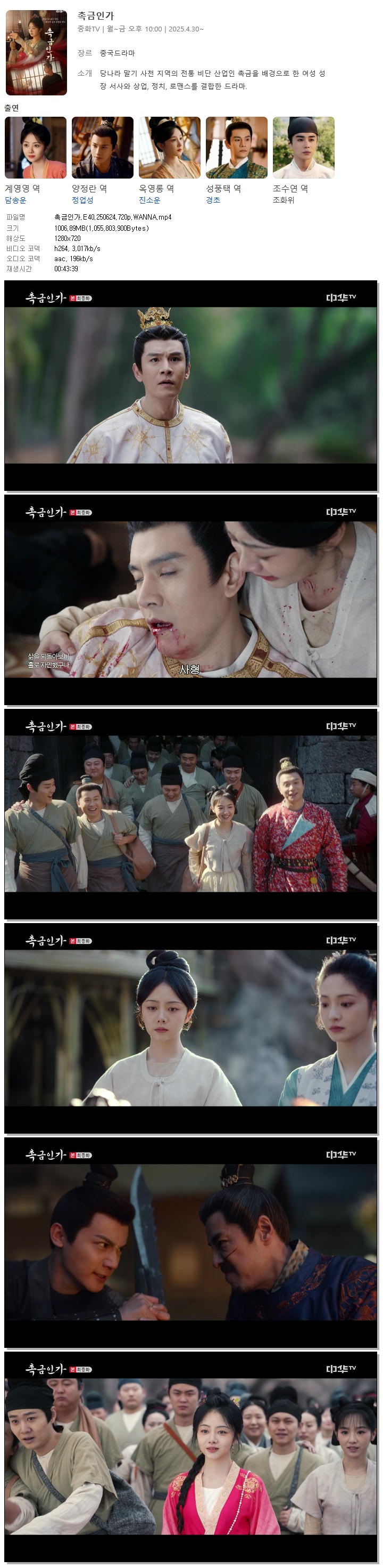 [중화TV] 촉금인가.E40.250624.720p.WANNA[담송운, 정업성].mp4 1006.9 M MP4 00:43:39 1280x720