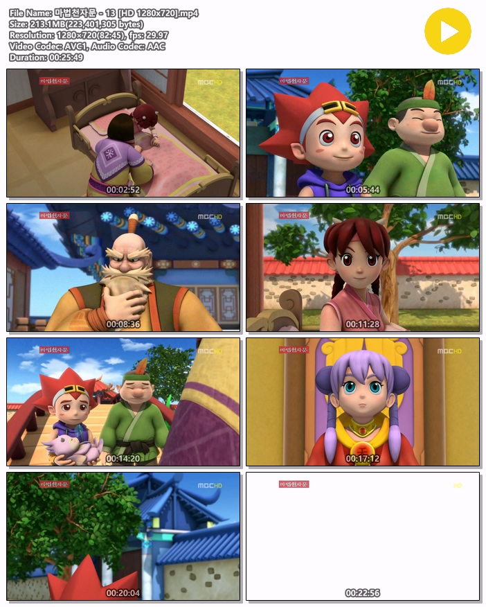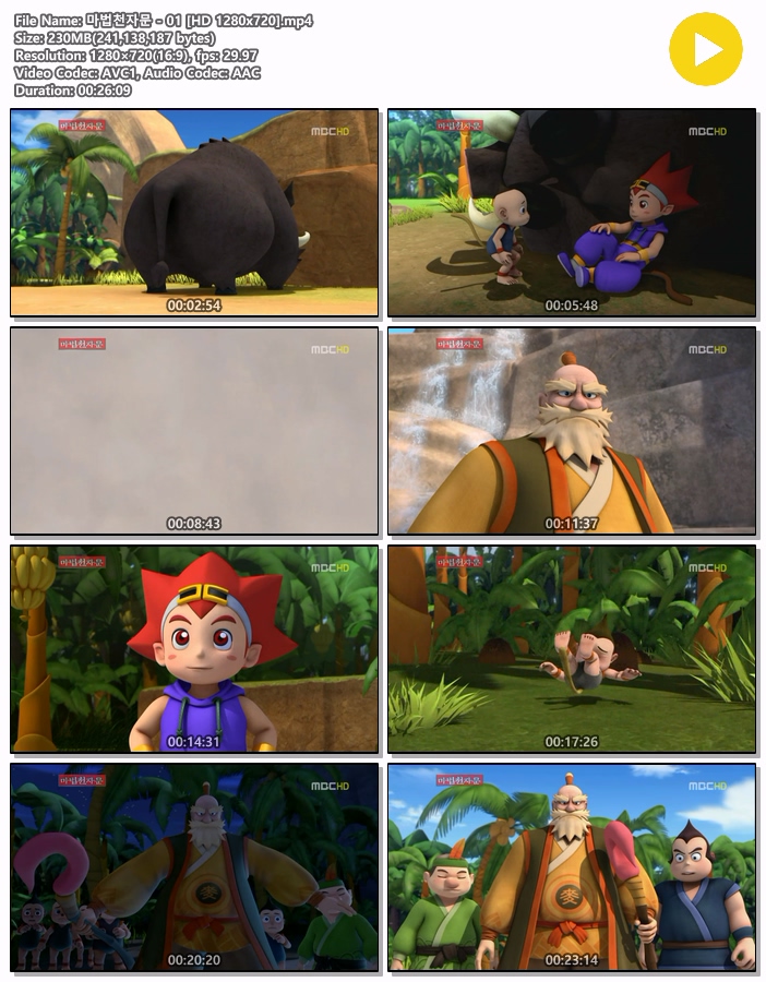 | 마법천자문 - 13 [HD 1280x720].mp4 | 213.1 M | MP4 | 00:25:49 | 1280x720 |