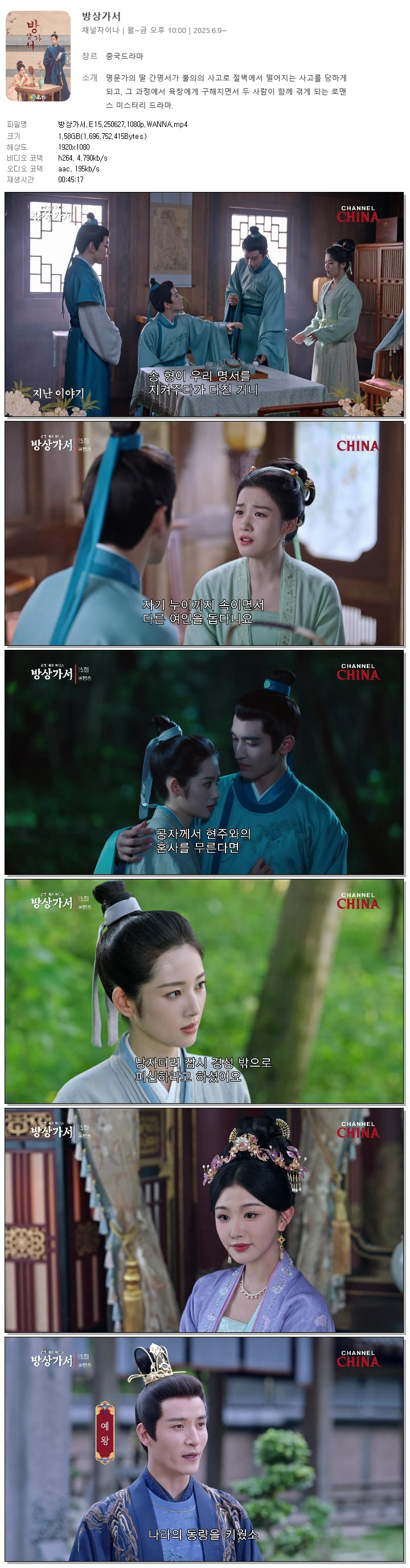 [채널차이나] 방상가서.E15.250627.1080p.WANNA[왕자기, 노욱효].mp4 1.6 G MP4 00:45:17 1920x1080