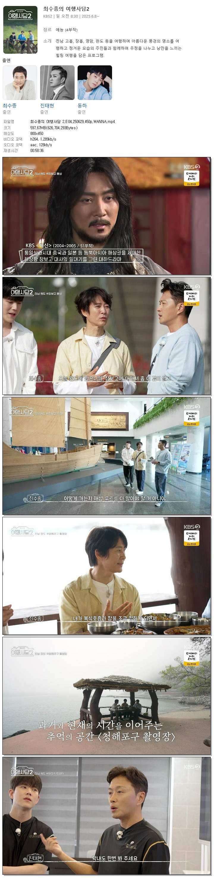 [KBS2] 최수종의 여행사담 2.E04.250629.450p.WANNA[최수종, 진태현]