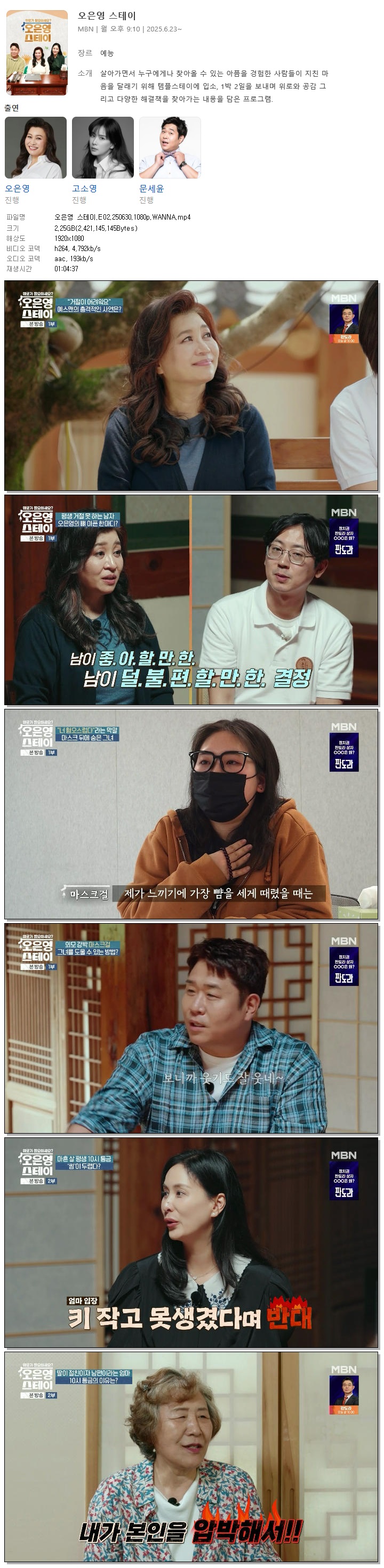[MBN] 오은영 스테이.E02.250630.1080p.WANNA[오은영, 고소영]