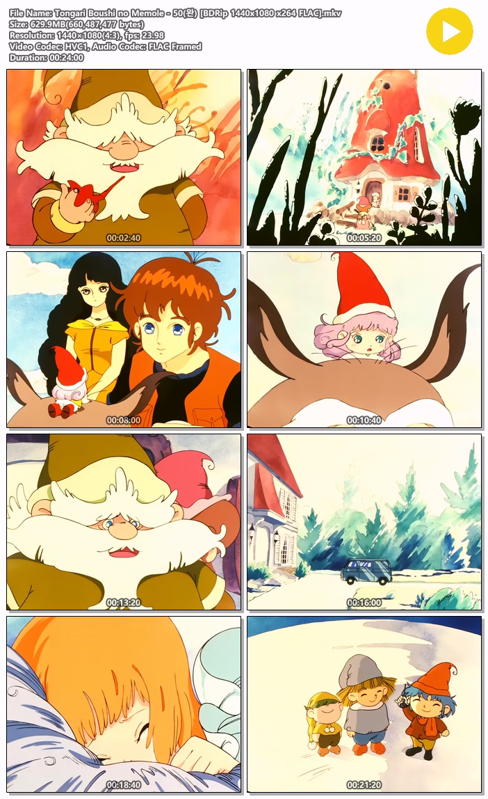 | Tongari Boushi no Memole - 50(완) [BDRip 1440x1080 x264 FLAC].mkv | 629.9 M | MKV | 00:24:00 | 1440x1080 |
