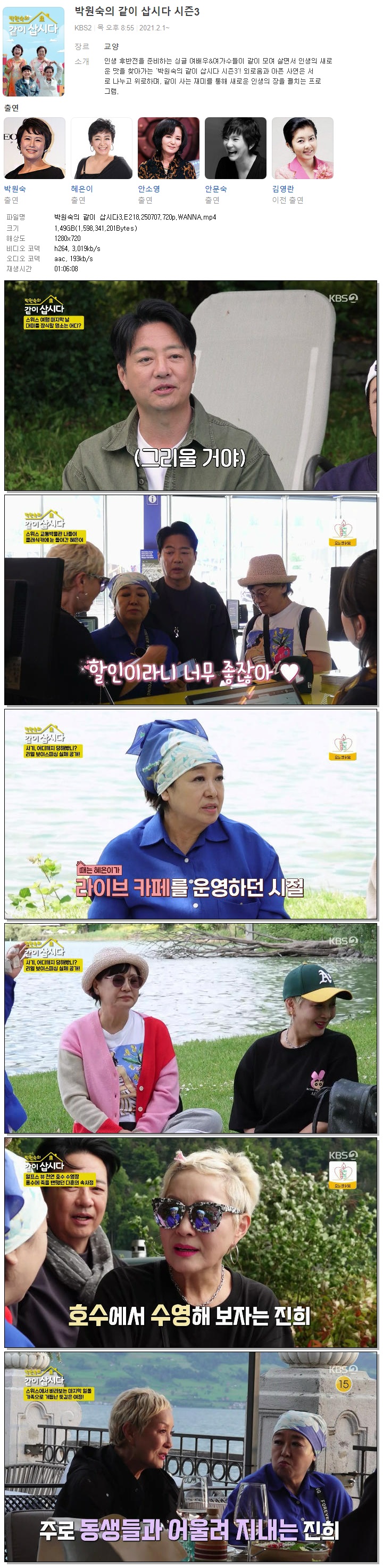 [KBS2] 박원숙의 같이 삽시다3.E218.250707.720p.WANNA[윤다훈, 홍진희]