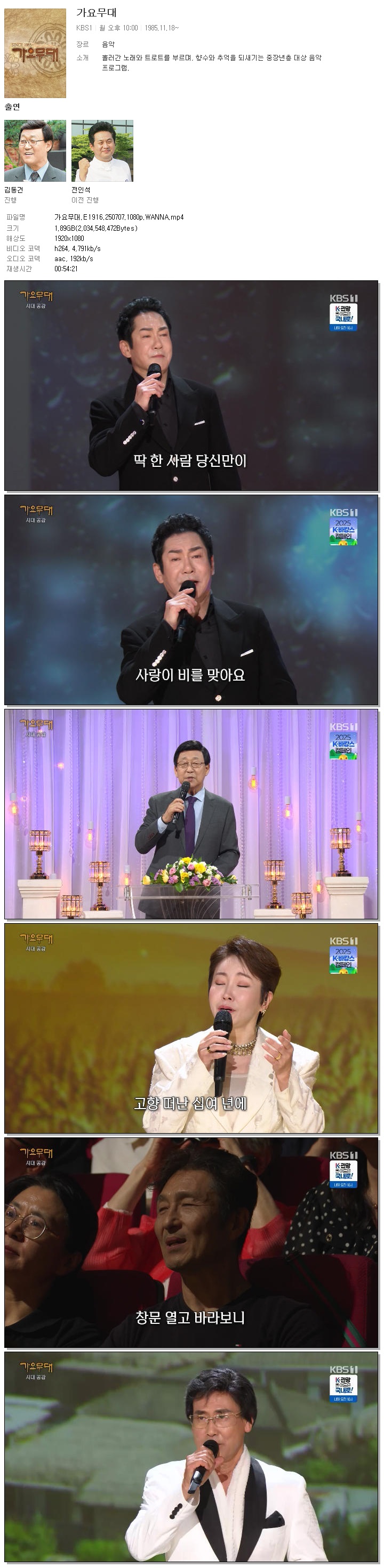 [KBS1] 가요무대.E1916.250707.1080p.WANNA[배진아, 김유라]