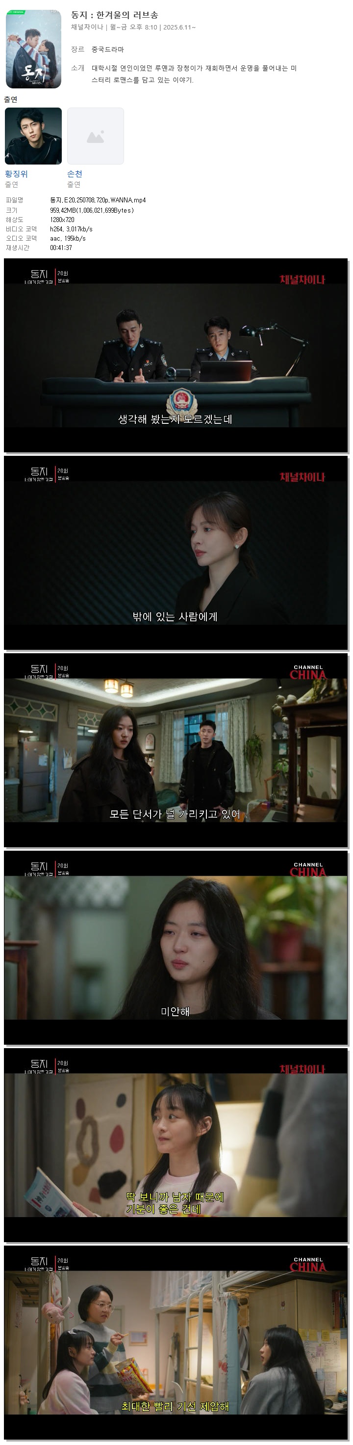[채널차이나] 동지.E20.250708.720p.WANNA[황경유, 손천]