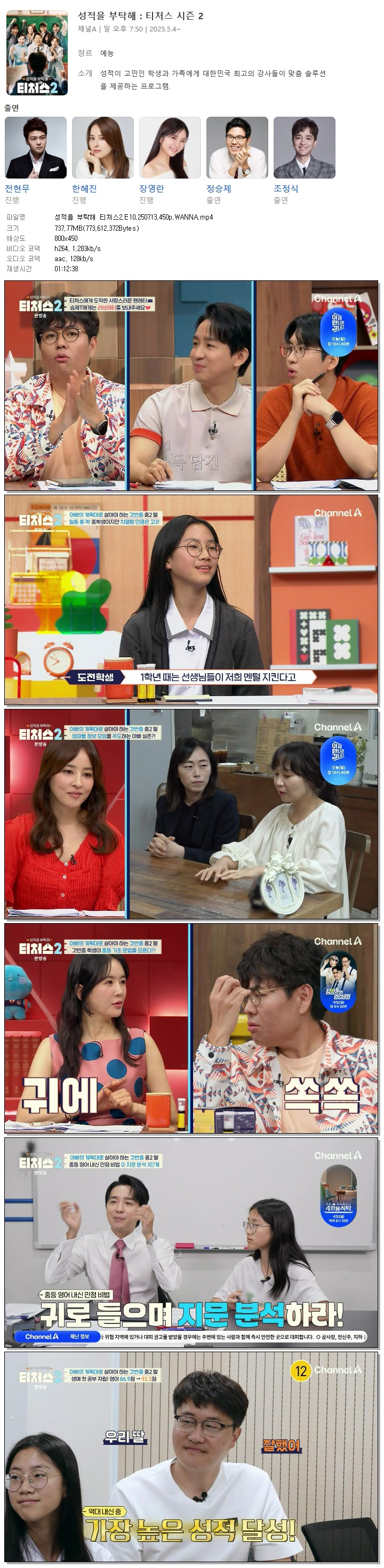 [채널A] 성적을 부탁해 티처스2.E10.250713.450p.WANNA[전현무, 한혜진]