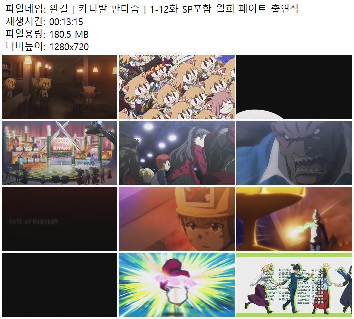 | Carnival Phantasm Fate Prototype 01화.mkv | 108.7 M | MKV | - | 1280x720 |
