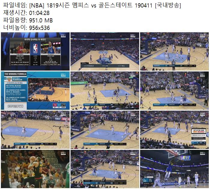 [NBA] 1819시즌 멤피스 vs 골든스테이트 190411 [국내방송]/