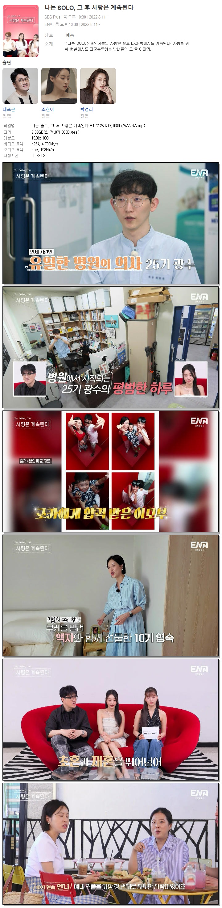 [ENA] 나는 솔로, 그 후 사랑은 계속된다.E122.250717.1080p.WANNA[경리, 보미]