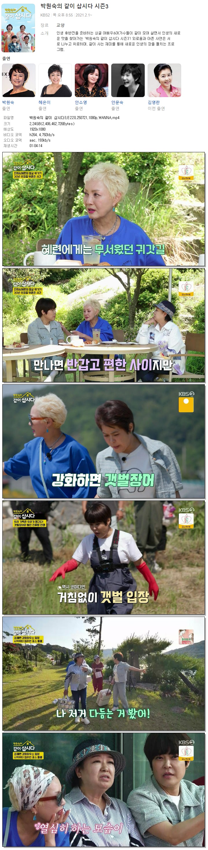 [KBS2] 박원숙의 같이 삽시다3.E220.250721.1080p.WANNA[윤다훈, 홍진희]