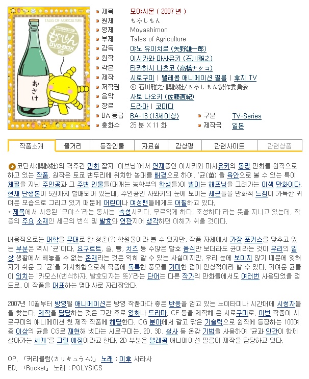 모야시몬 (Moyashimon, TV, 2007) 01~11편[完]