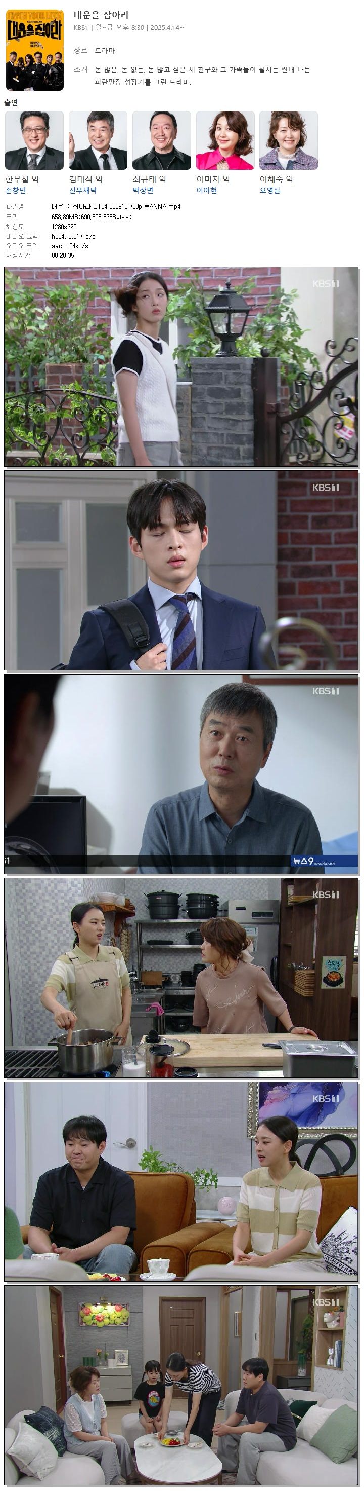 [KBS1] 대운을 잡아라.E104.250910.720p.WANNA[손창민, 이아현]