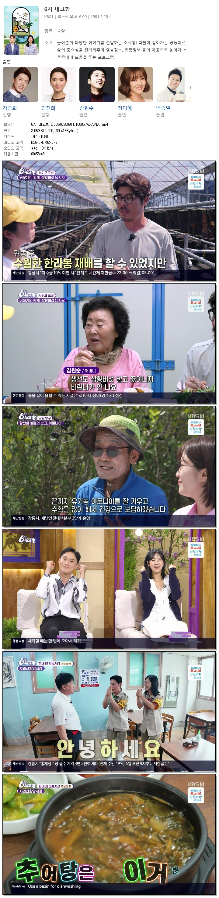 [KBS1] 6시 내고향.E8368.250911.1080p.WANNA[강승화, 김진희]