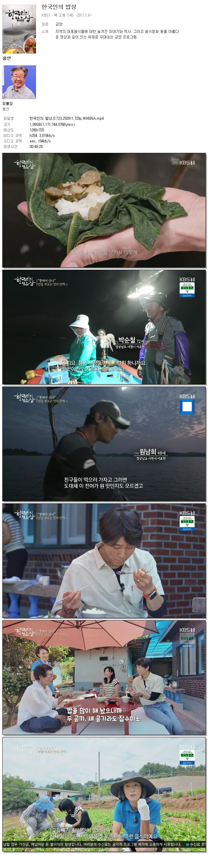 [KBS1] 한국인의 밥상.E723.250911.720p.WANNA
