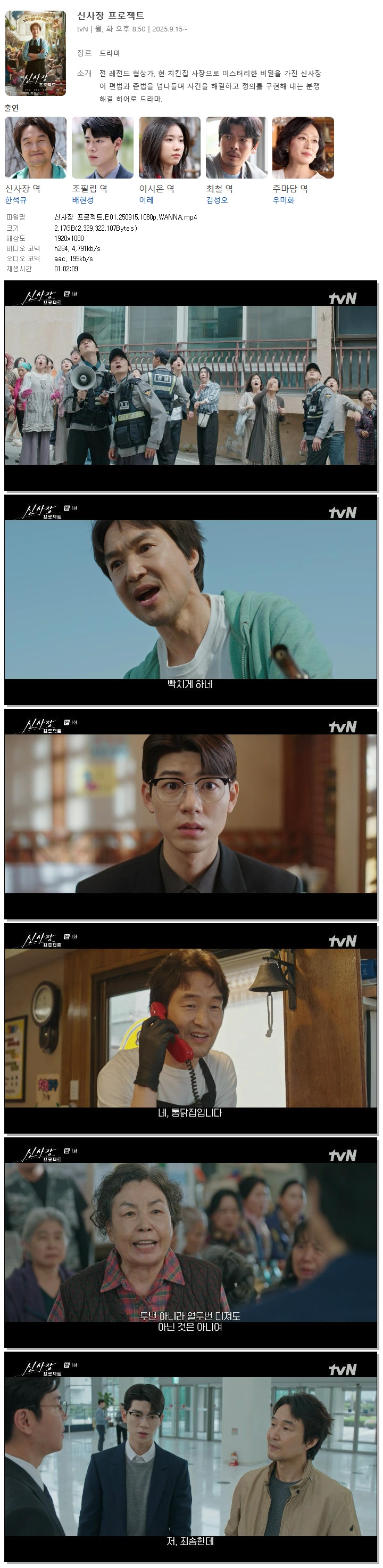 [TVN] 신사장 프로젝트.E01.250915.1080p.WANNA[한석규, 배현성]