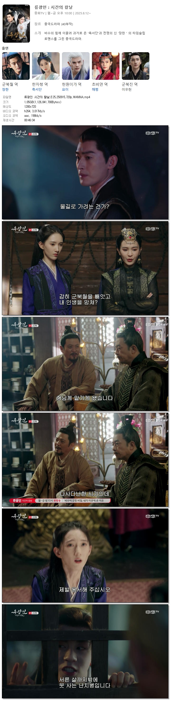 [중화TV] 류광인 시간의 칼날.E25.250915.720p.WANNA[군북월, 한자청]