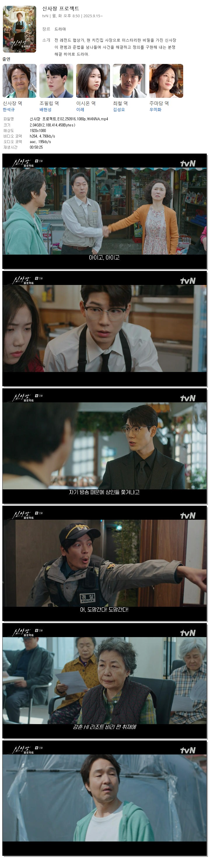 [TVN] 신사장 프로젝트.E02.250916.1080p.WANNA[한석규, 배현성]