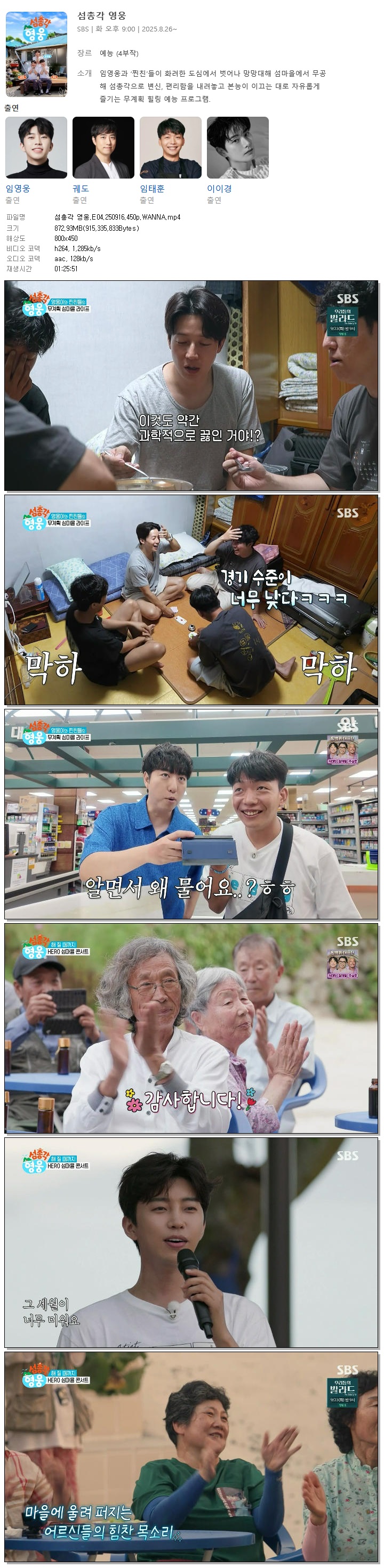 [SBS] 섬총각 영웅.E04.250916.450p.WANNA[임영웅, 궤도]