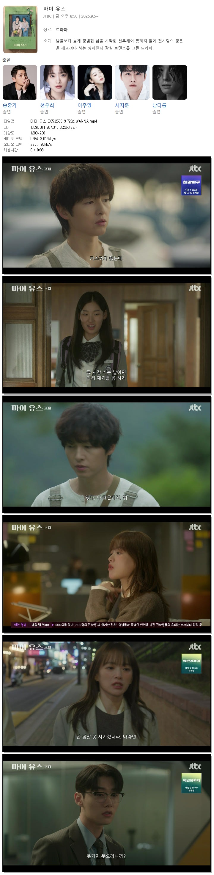 [JTBC] 마이 유스.E05.250919.720p.WANNA[송중기, 천우희]