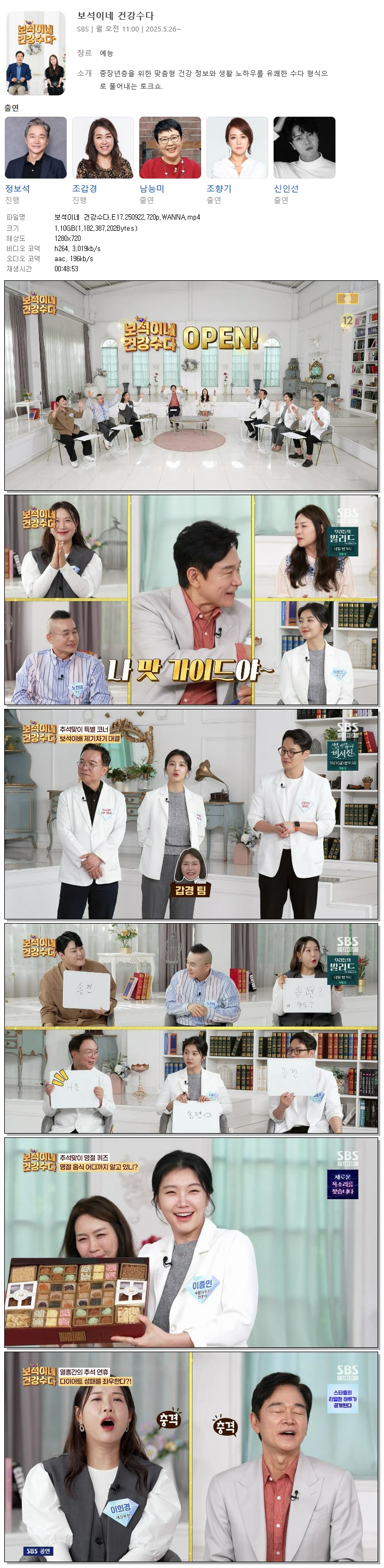 [SBS] 보석이네 건강수다.E17.250922.720p.WANNA[정보석, 조갑경]
