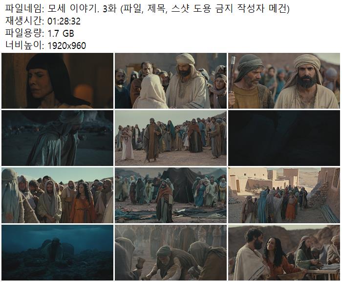 모세 이야기. 3화 (파일, 제목, 스샷 도용 금지!! 작성자 메건).mkv 1.7 G MKV 01:28:32 1920x960