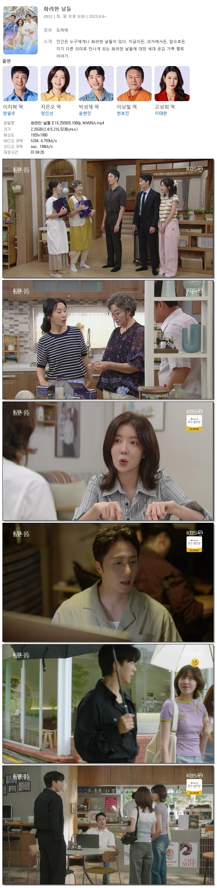[KBS2] 화려한 날들.E16.250928.1080p.WANNA[정일우, 정인선]