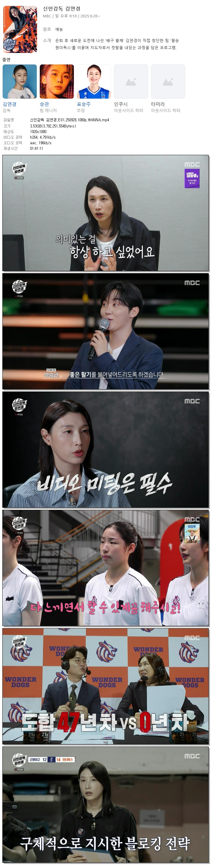 [MBC] 신인감독 김연경.E01.250928.1080p.WANNA[김연경, 부승관]