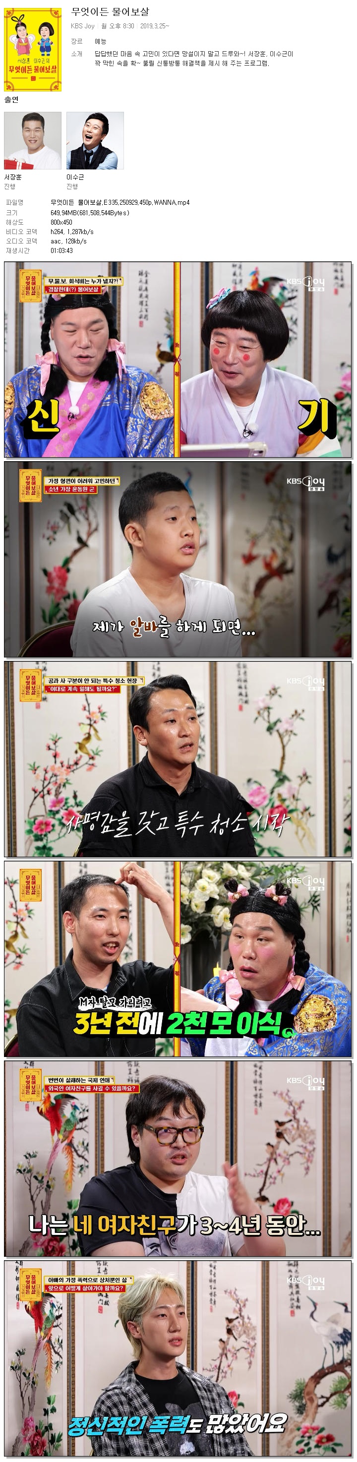 [KBS JOY] 무엇이든 물어보살.E335.250929.450p.WANNA[서장훈, 이수근]