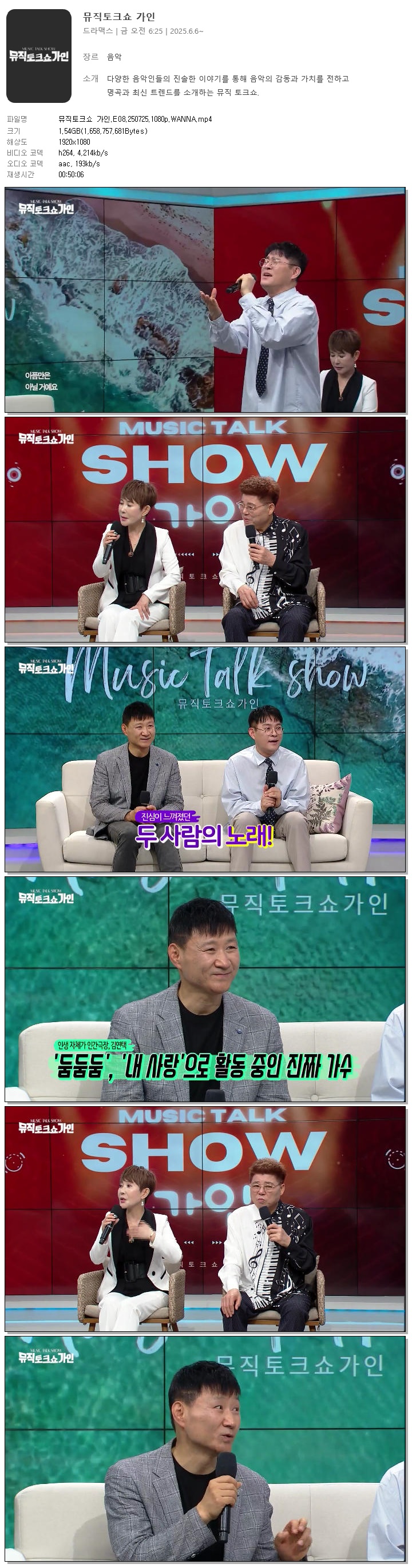 [드라맥스] 뮤직토크쇼 가인.E08.250725.1080p.WANNA[현선아, 정원수]