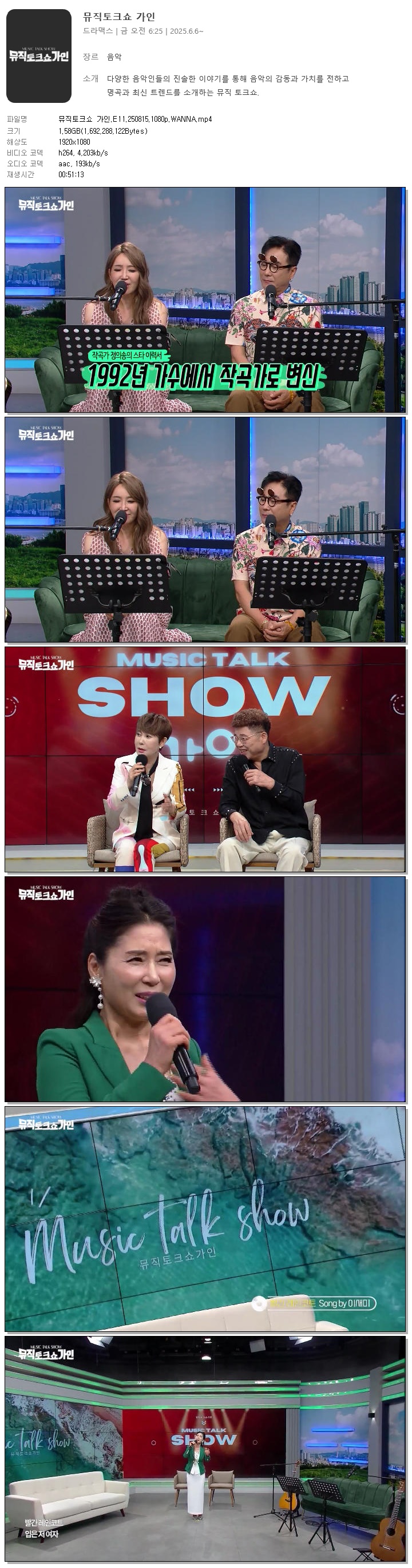 [드라맥스] 뮤직토크쇼 가인.E11.250815.1080p.WANNA[현선아, 정원수]