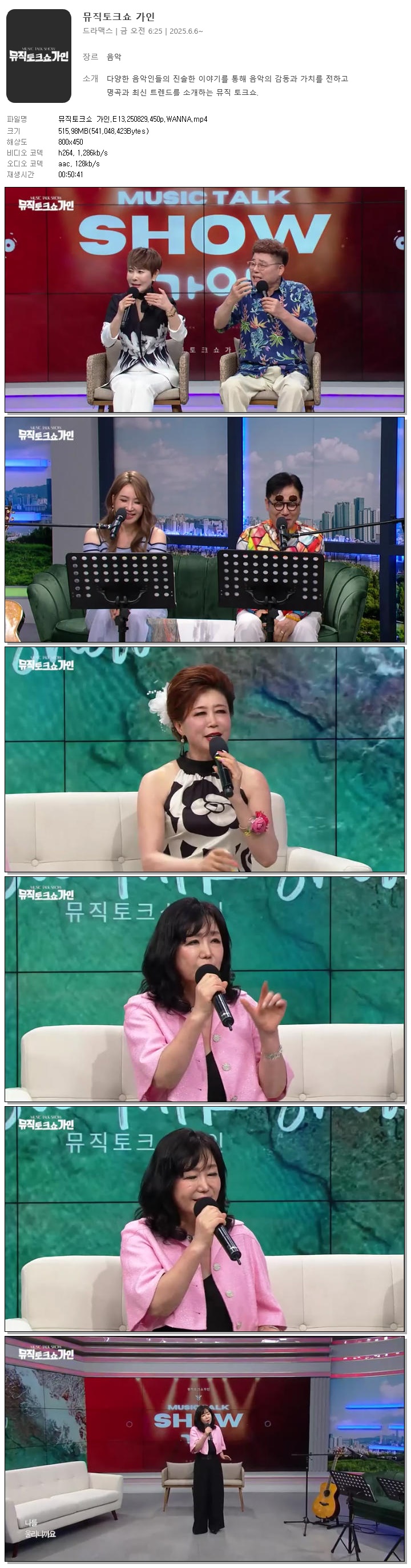 [드라맥스] 뮤직토크쇼 가인.E13.250829.450p.WANNA[현선아, 정원수]