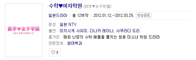 수학 여자학원 12부작 (미치시게 사유미, 다나카 레이나, 사쿠라다 도리)