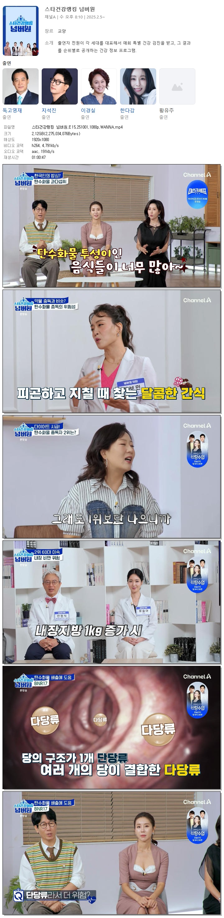 [채널A] 스타건강랭킹 넘버원.E15.251001.1080p.WANNA[지석진, 이경실]