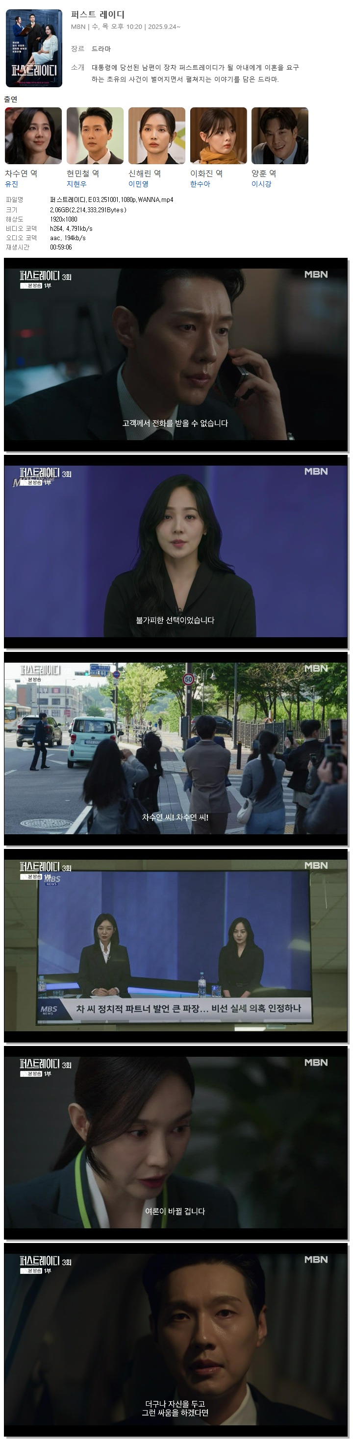 [MBN] 퍼스트레이디.E03.251001.1080p.WANNA[유진, 지현우]