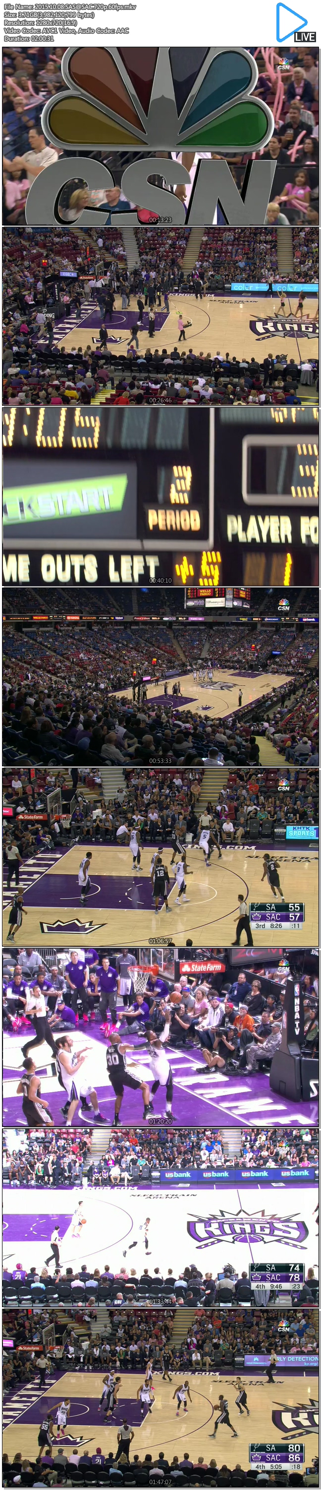 스포츠 샌안토니오 at 새크라멘토 151009 720p 60fps 프리시즌