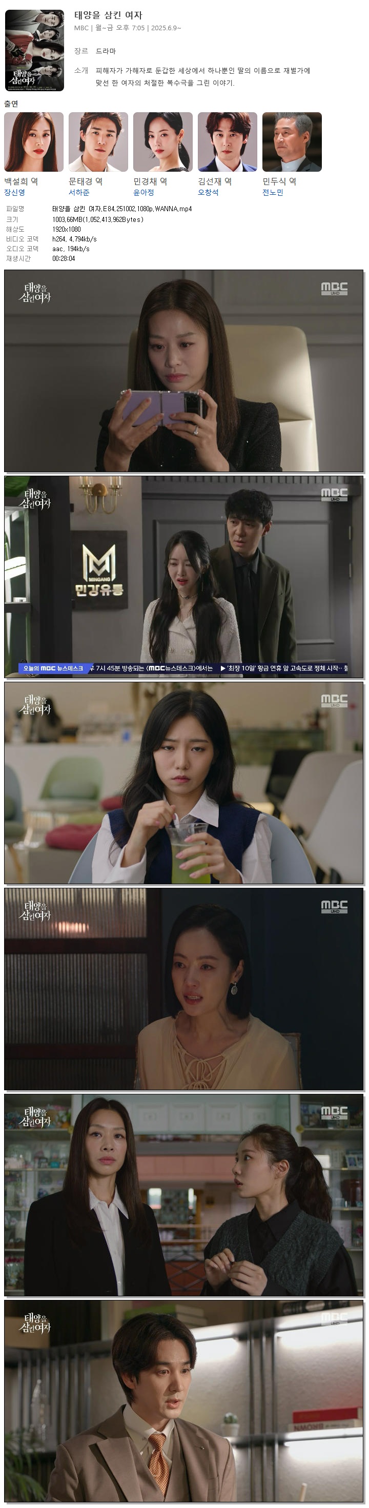 [MBC] 태양을 삼킨 여자.E84.251002.1080p.WANNA[장신영, 서하준]