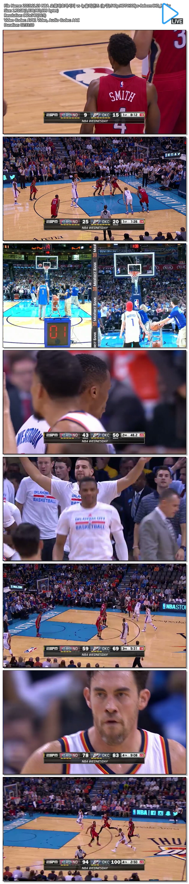 2015.11.19 NBA 오클라호마시티 vs 뉴올리언즈 (농구).540p.HDTV.30fps-Reborn4HD_h.mkv