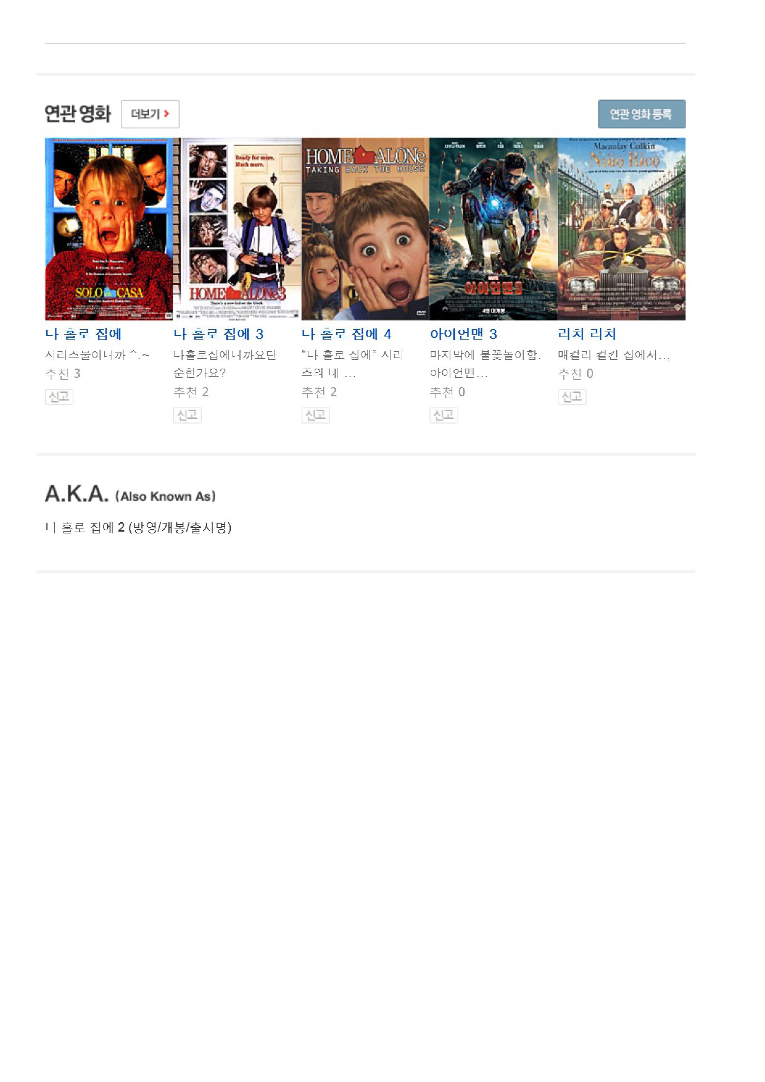 나 홀로 집에 시리즈 2 파일 2분할 버전입니다.