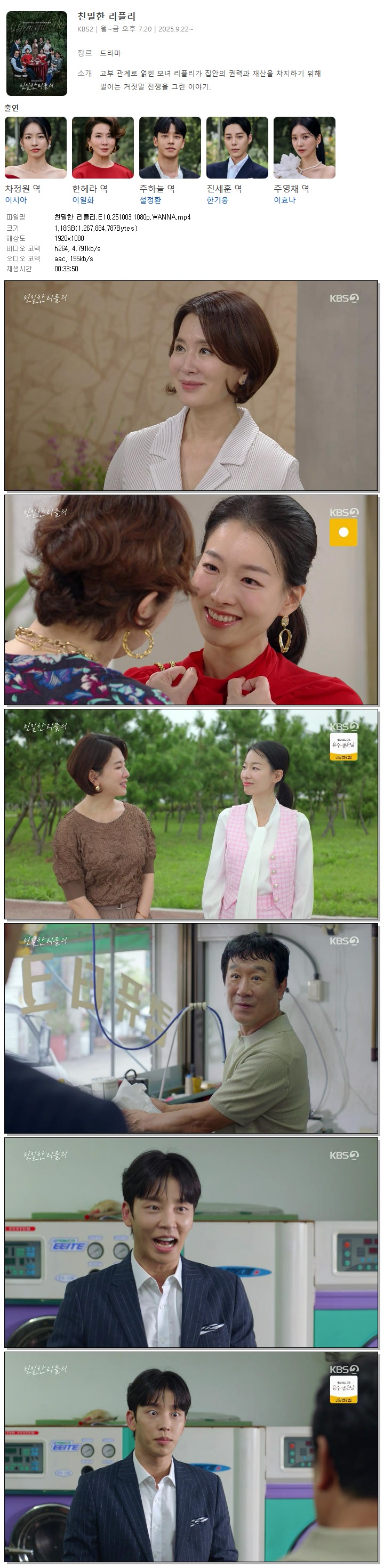 [KBS2] 친밀한 리플리.E10.251003.1080p.WANNA[이시아, 이일화]