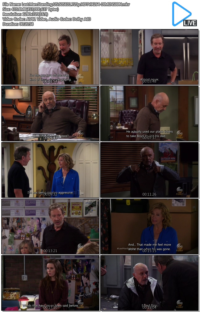 | Last.Man.Standing.US.S05E01.720p.HDTV.X264-DIMENSION.mkv | 435.8 M | MKV | 00:20:58 | 1280x720 |