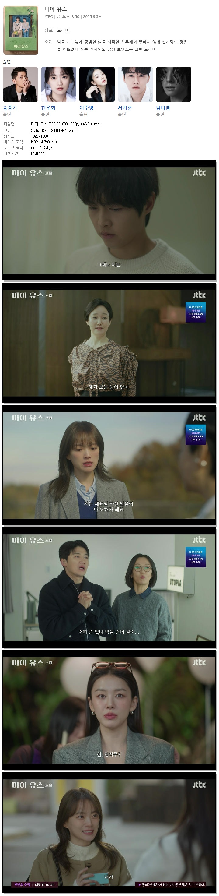 [JTBC] 마이 유스.E09.251003.1080p.WANNA[송중기, 천우희]