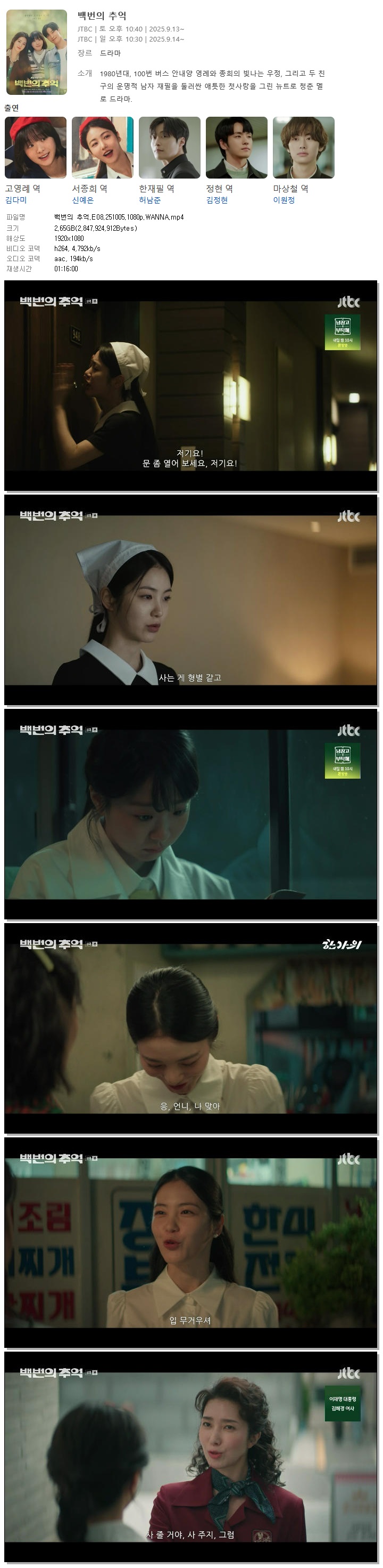 [JTBC] 백번의 추억.E08.251005.1080p.WANNA[김다미, 신예은]