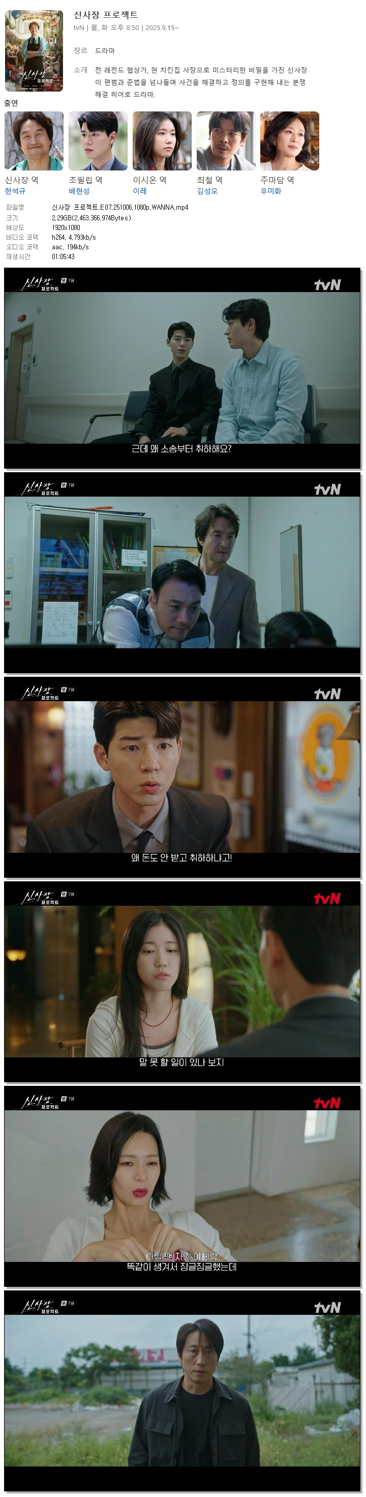 [TVN] 신사장 프로젝트.E07.251006.1080p.WANNA[한석규, 배현성]