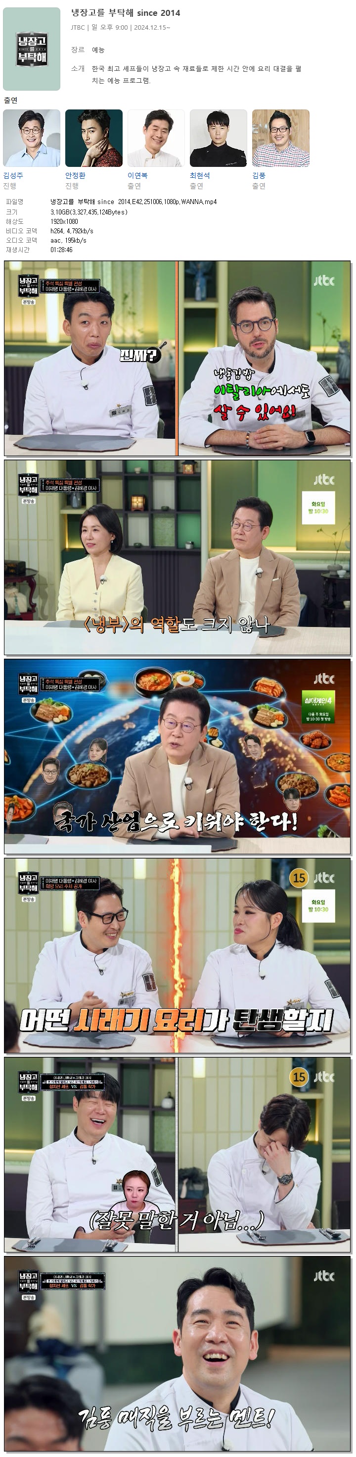 [JTBC] 냉장고를 부탁해 since 2014.E42.251006.1080p.WANNA[김성주, 안정환].mp4 3.1 G MP4 01:28:46 1920x1080